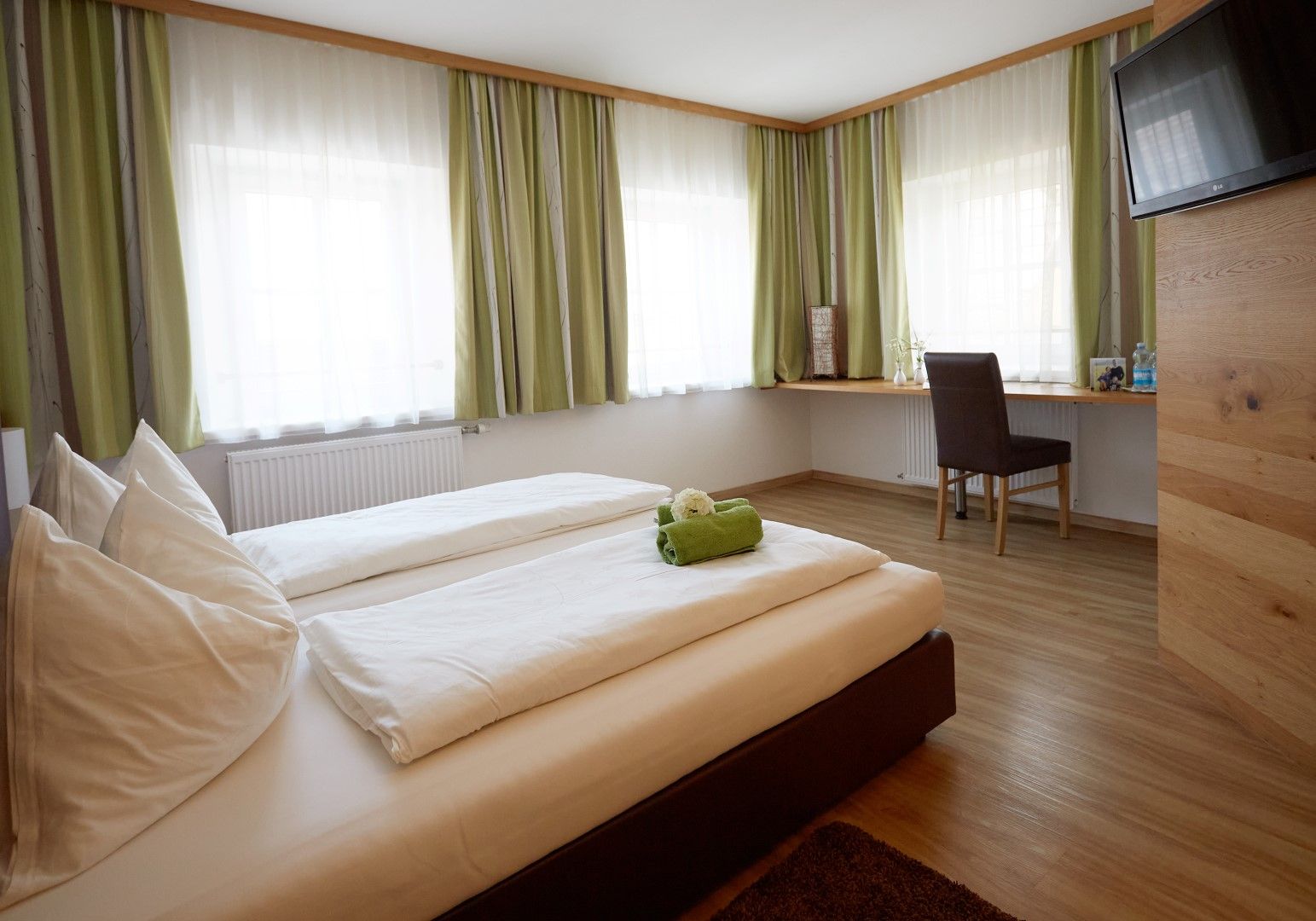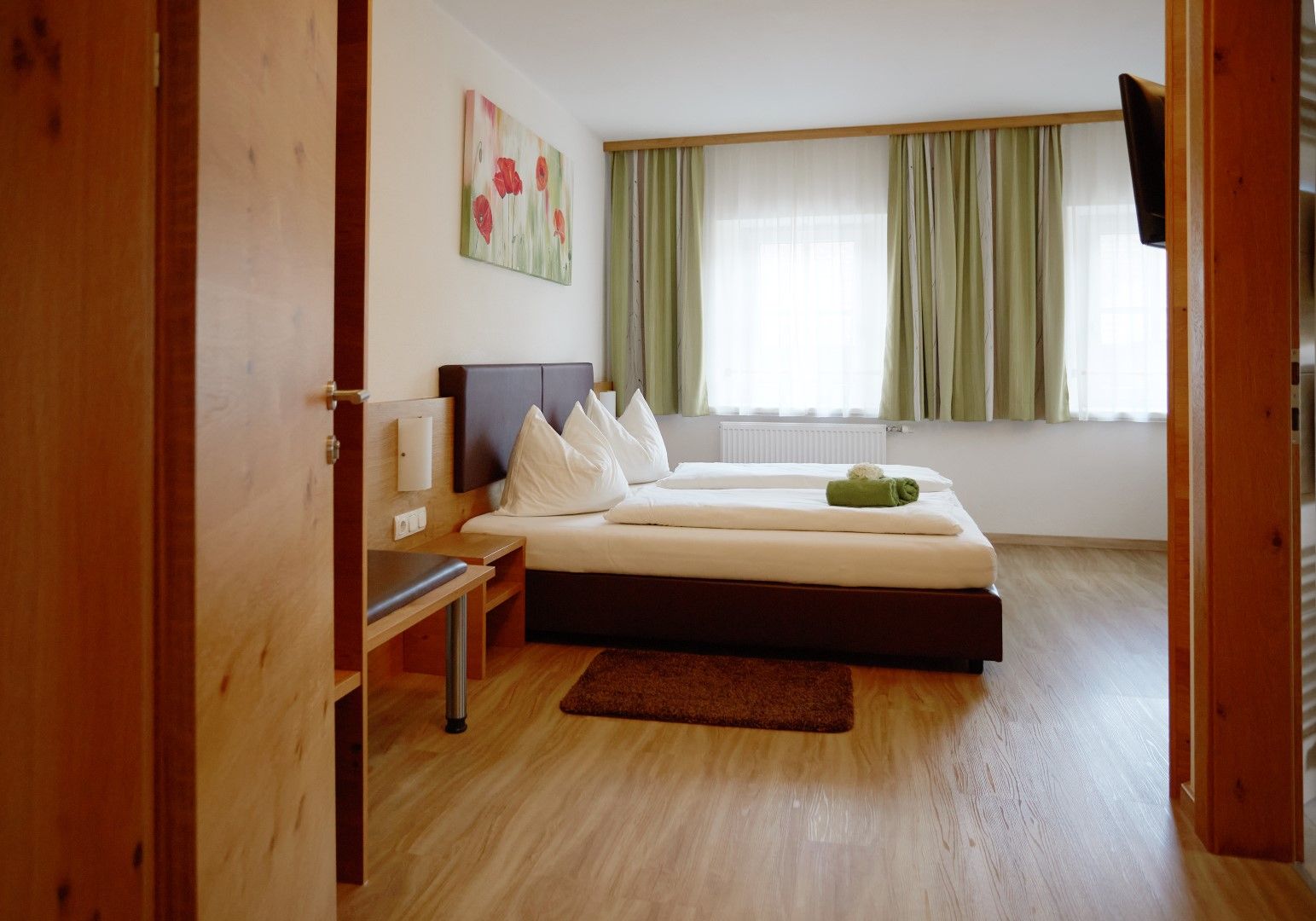 Die Zimmer sind sehr hell und freundlich gestaltet und laden zum wohlfühlen ein.