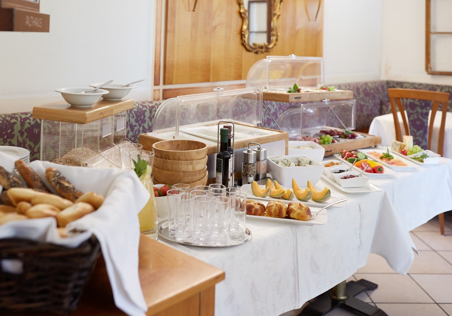 Um unsere Gäste gestärkt in den Tag schicken zu können, bieten wir ihnen ein reichhaltiges Frühstück in Form von einem Buffet das wir im Stüberl vorbereiten.